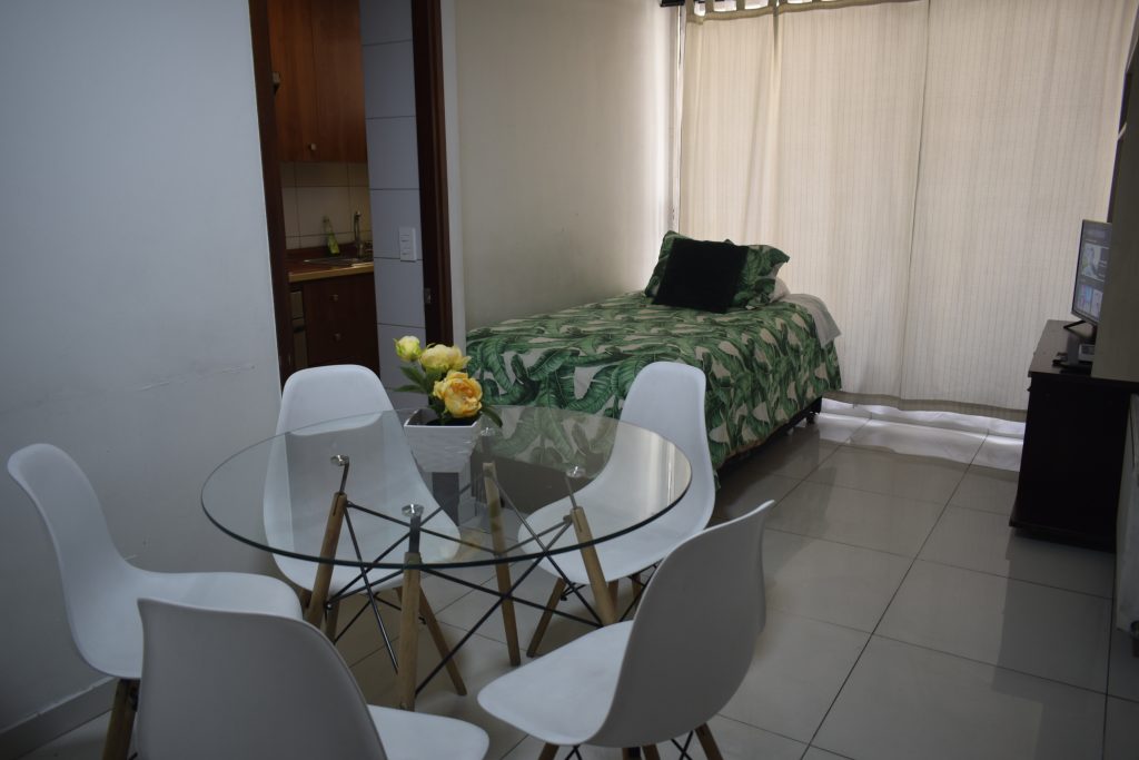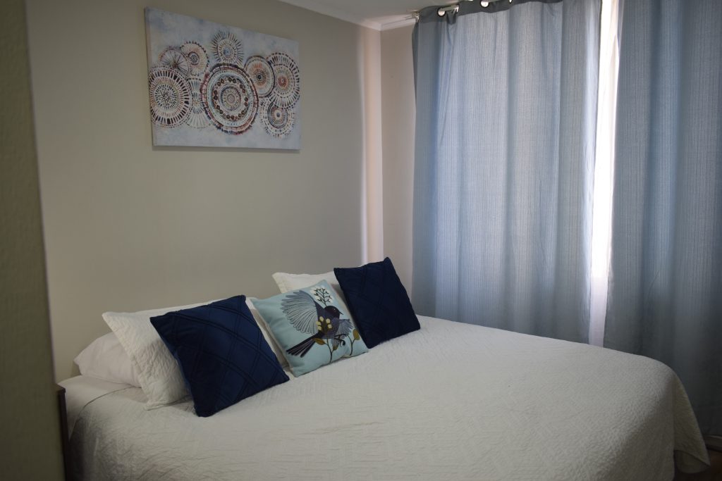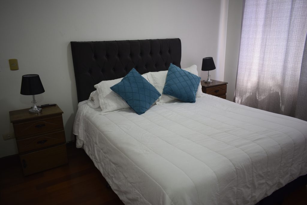 Apartamento equipado para 7 personas en piso 10, dormitorio principal con baño en suite, 2do baño en pasillo frente a 2do dormitorio. Cuenta con 1 cama matrimonial, 2 camas de 1 plaza y una cama nido. Estamos a 3 cuadras del Palacio La Moneda, cercano a Bancos, centros comerciales, Cines, Teatro Municipal, Restaurantes, Supermercados. Si […]